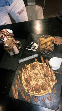I went at 11 at night and the restaurant was packed to the brim. I personally look to see if the restaurants have a lot of customers and believe that gives a clue as to how good the food is, popular wise. Of course there are scenarios in which some places are just more low key. The restaurant was a cool atmosphere, with great service and AMAZING deserts. In the picture you see a nutella waffle, a delicious peanut butter shake topped with a brownie, and of course some churros with chocolate.