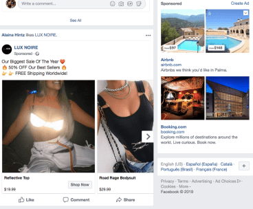 a days. 90% of Americans are online shoppers. When you are scrolling on instagram or facebook, little ads about buying clothes or going to a certain restaurant that is promoting a deal are constantly popping up and drawing people’s attention. As you can see to the left, facebook has picked up on the fact that I am a huge online shopper, and I also am a frequent air bnb user. Facebook is using marketing 2.0 and spreading the word and getting people interested by picking up on my actions, and relating to my interests.